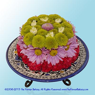 An unexpected beauty and complete with mini surprises ... the more you look, the more you like. Complete with mini carnations, daisies, buttons, and cushions. The cake measures approximately 6 inches in diameter and stands 3.5 inches tall with a plate or 6.5 inches tall with the plate and riser.