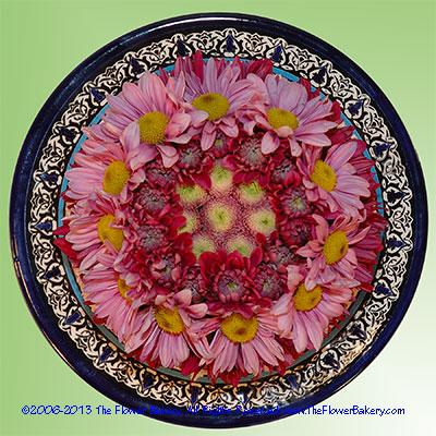 Reminiscent of the Hawaiian spirit the Mini Lavender Aloha™ Flower Cake consists if pink mini carnations, lavender daisies, lavender buttons and purple cushions. Perfect for any occasion and available as shown with designer plate and riser, atop a designer plate or cake only. The cake measures approximately 6.5 inches in diameter and stands 4.5 inches tall with a plate or 7.5 inches tall with the plate and riser.
