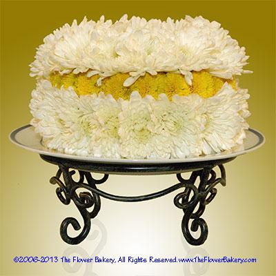 This Flower Cake arrangement is available with a 8.6" designer plate.